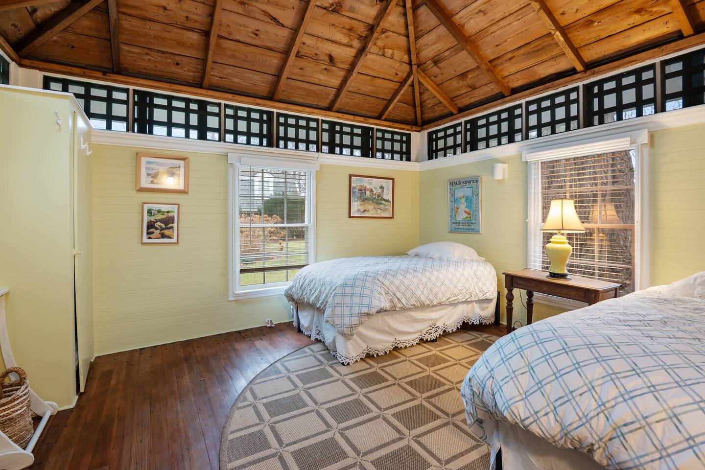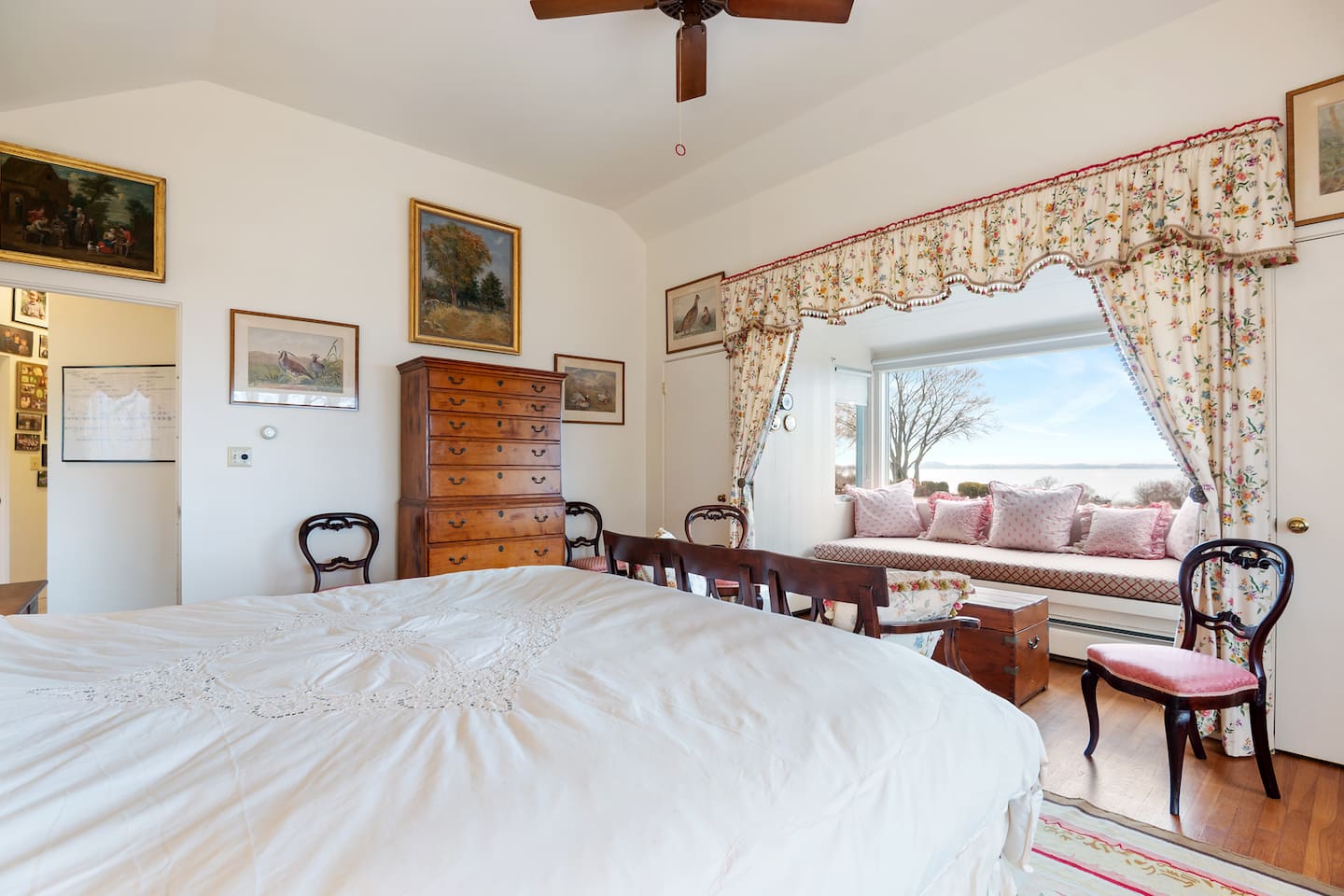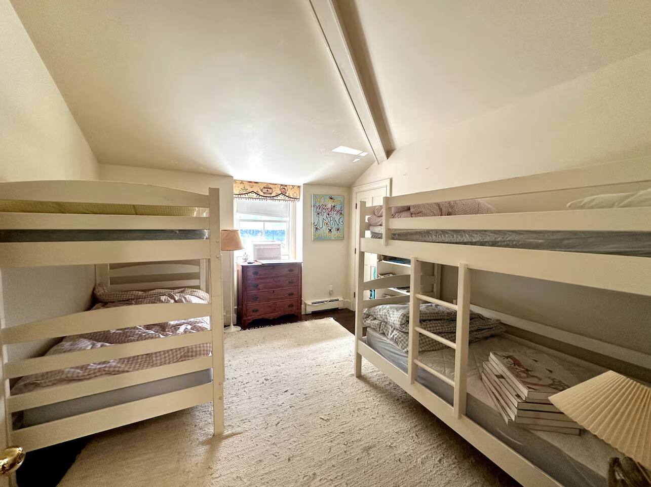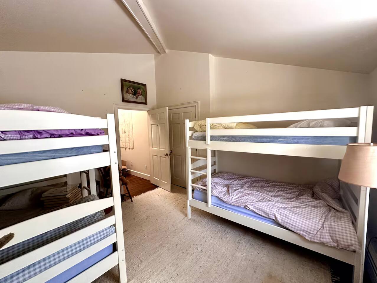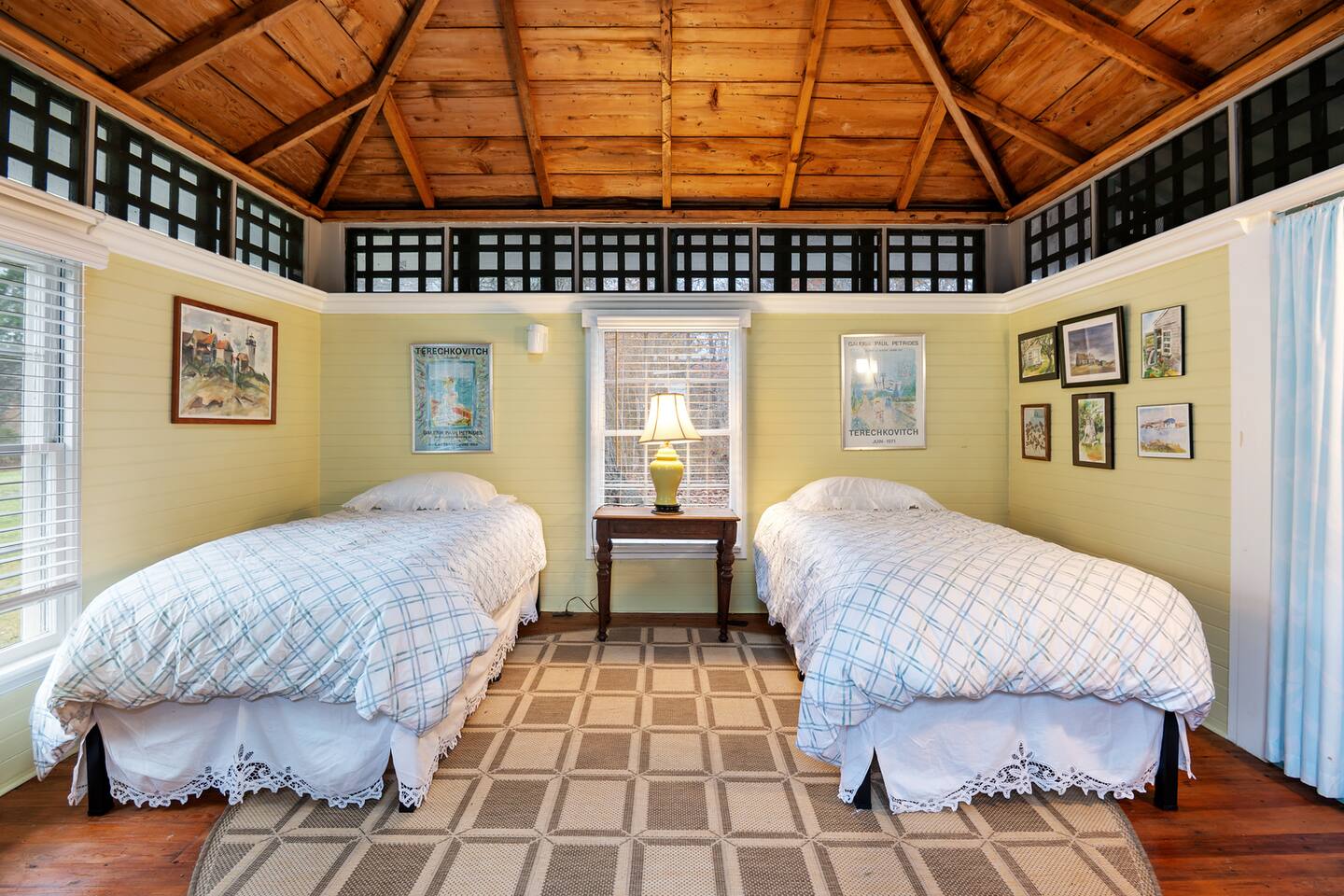 The estate has 4 separate structures and a full patio overlooking the bay. Main house - large living area, large renovated kitchen, large dining area, two bedrooms with king beds and en suite bathrooms. One half bath in the laundry room. Monkey house - upstairs living area, kitchen, bedroom with king bed and bunk room with 2 steps of bunks. Summer house - large living area overlooking the bay and patio in front, master bed with king and side room with full that share a bathroom. Two rooms both with 2 twins upstairs and a bathroom. Guest house - two twins with a full bath.