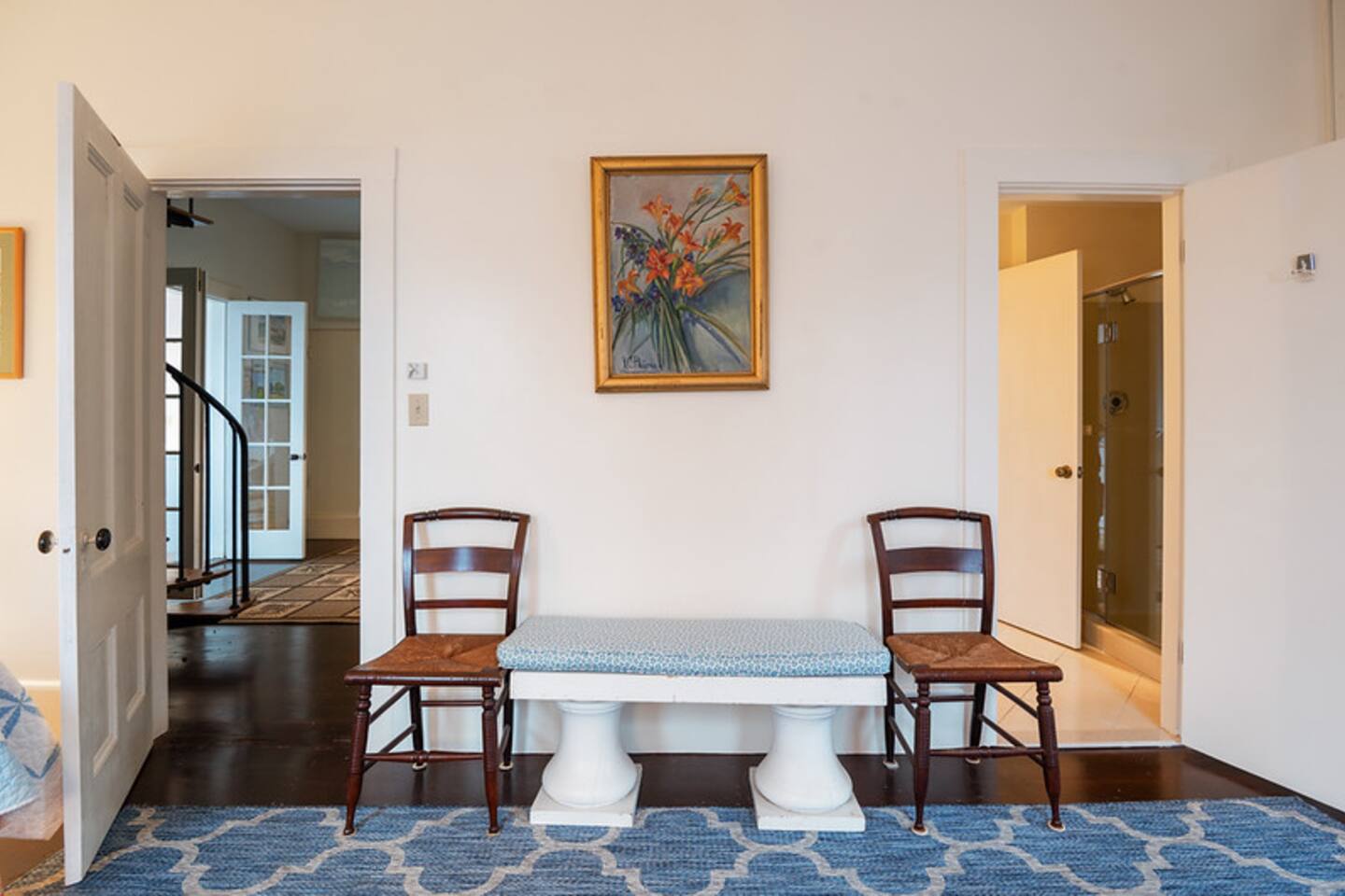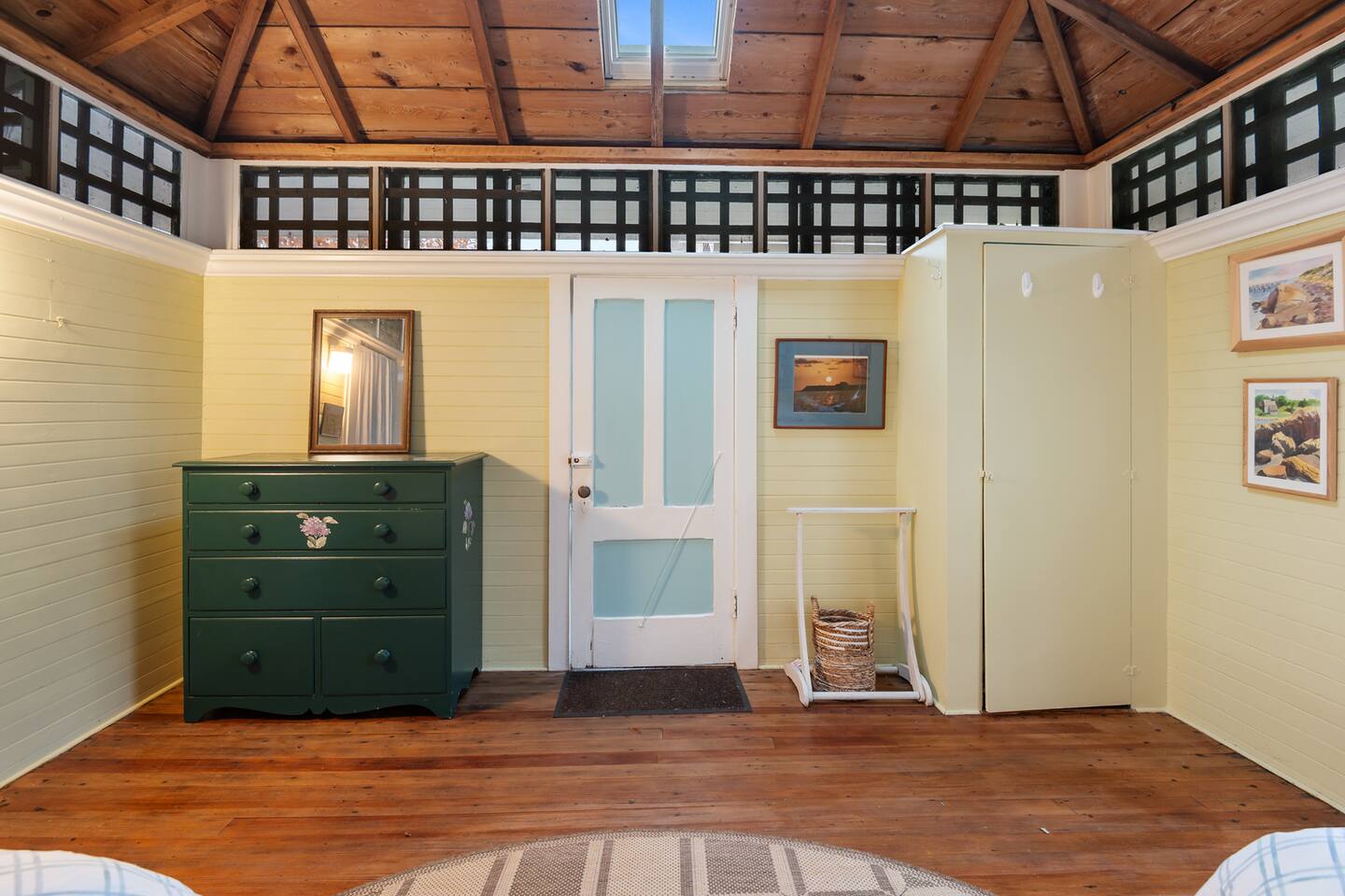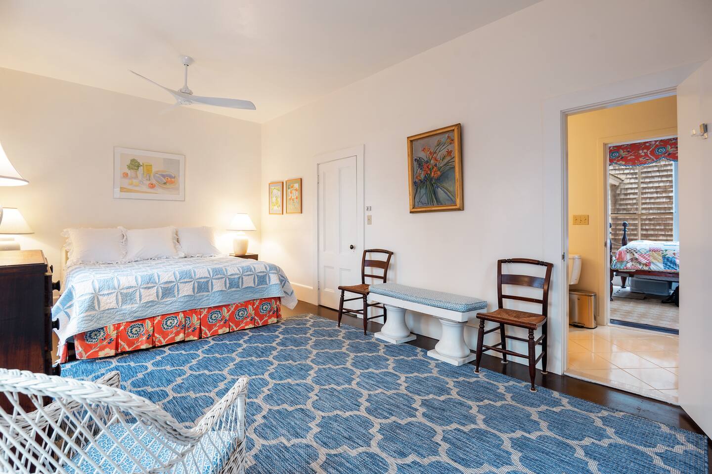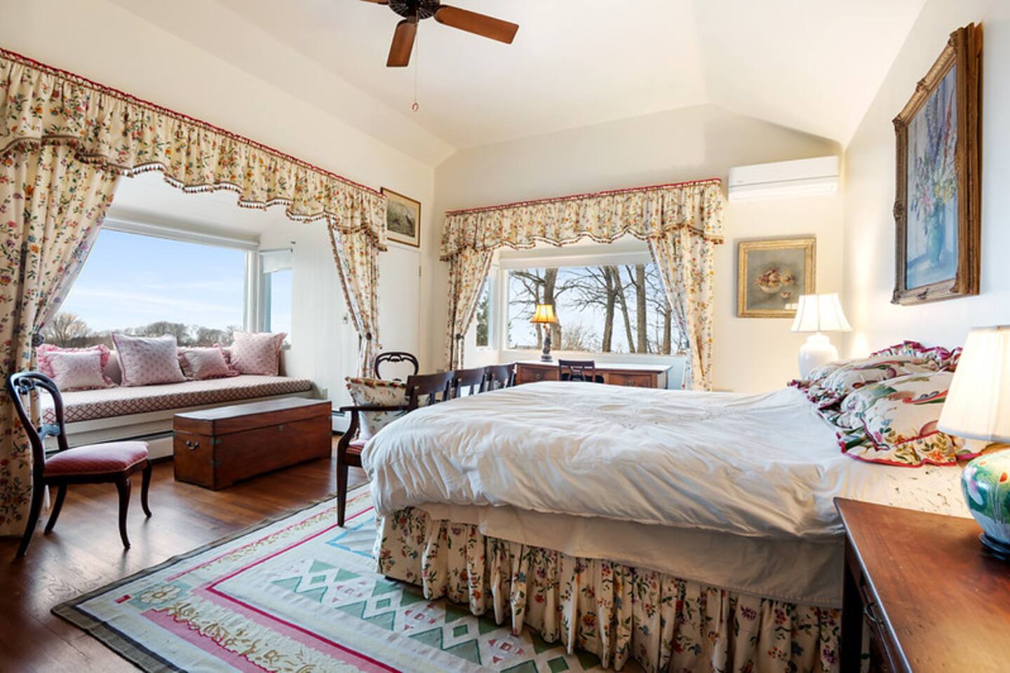 The estate has 4 separate structures and a full patio overlooking the bay. Main house - large living area, large renovated kitchen, large dining area, two bedrooms with king beds and en suite bathrooms. One half bath in the laundry room. Monkey house - upstairs living area, kitchen, bedroom with king bed and bunk room with 2 steps of bunks. Summer house - large living area overlooking the bay and patio in front, master bed with king and side room with full that share a bathroom. Two rooms both with 2 twins upstairs and a bathroom. Guest house - two twins with a full bath.
