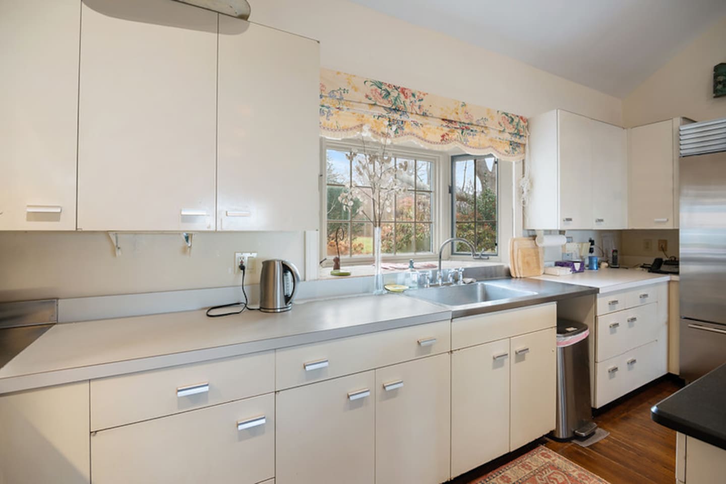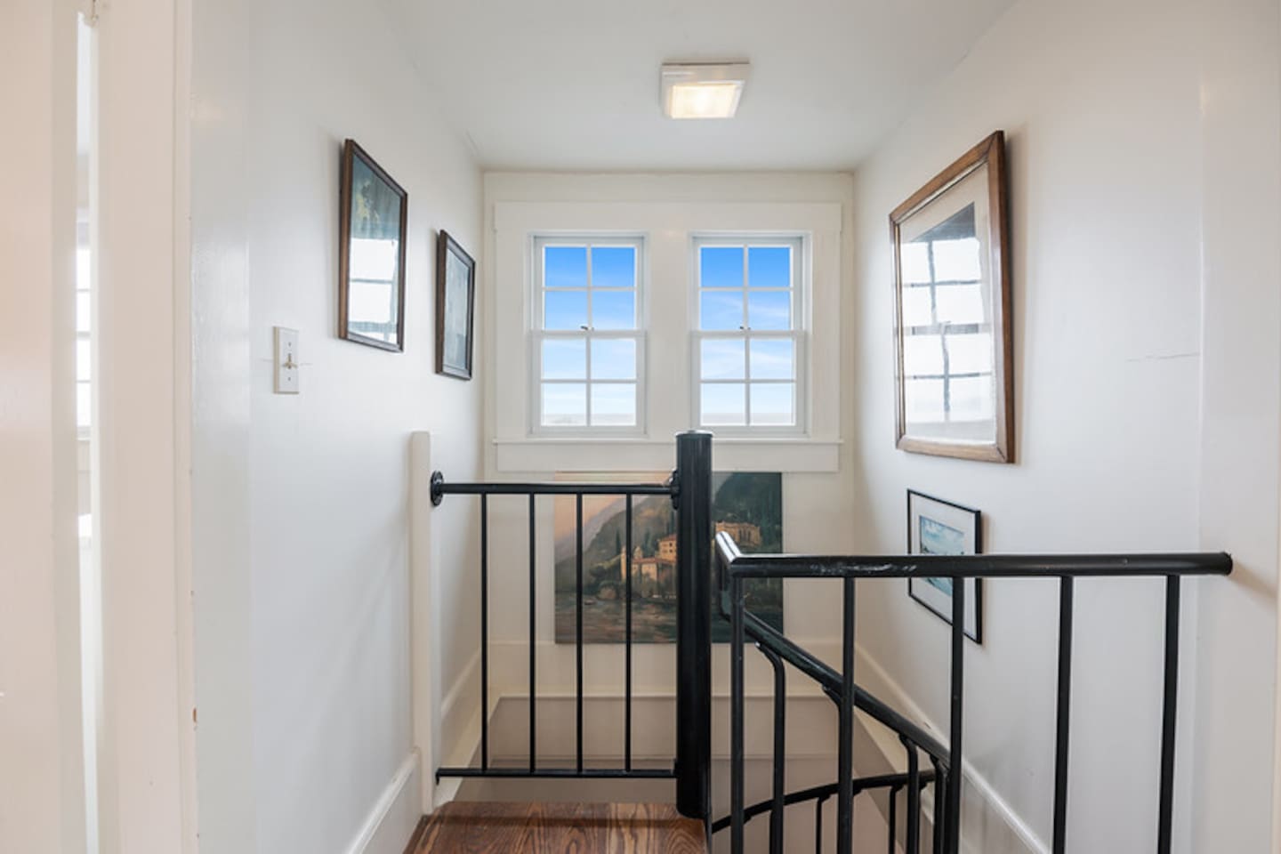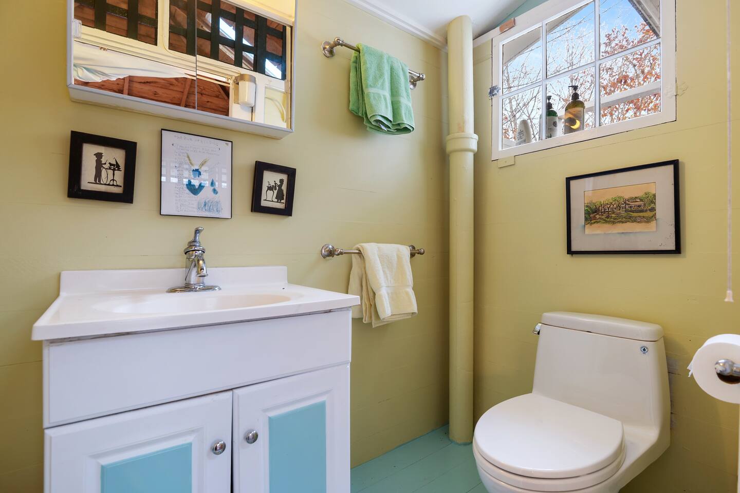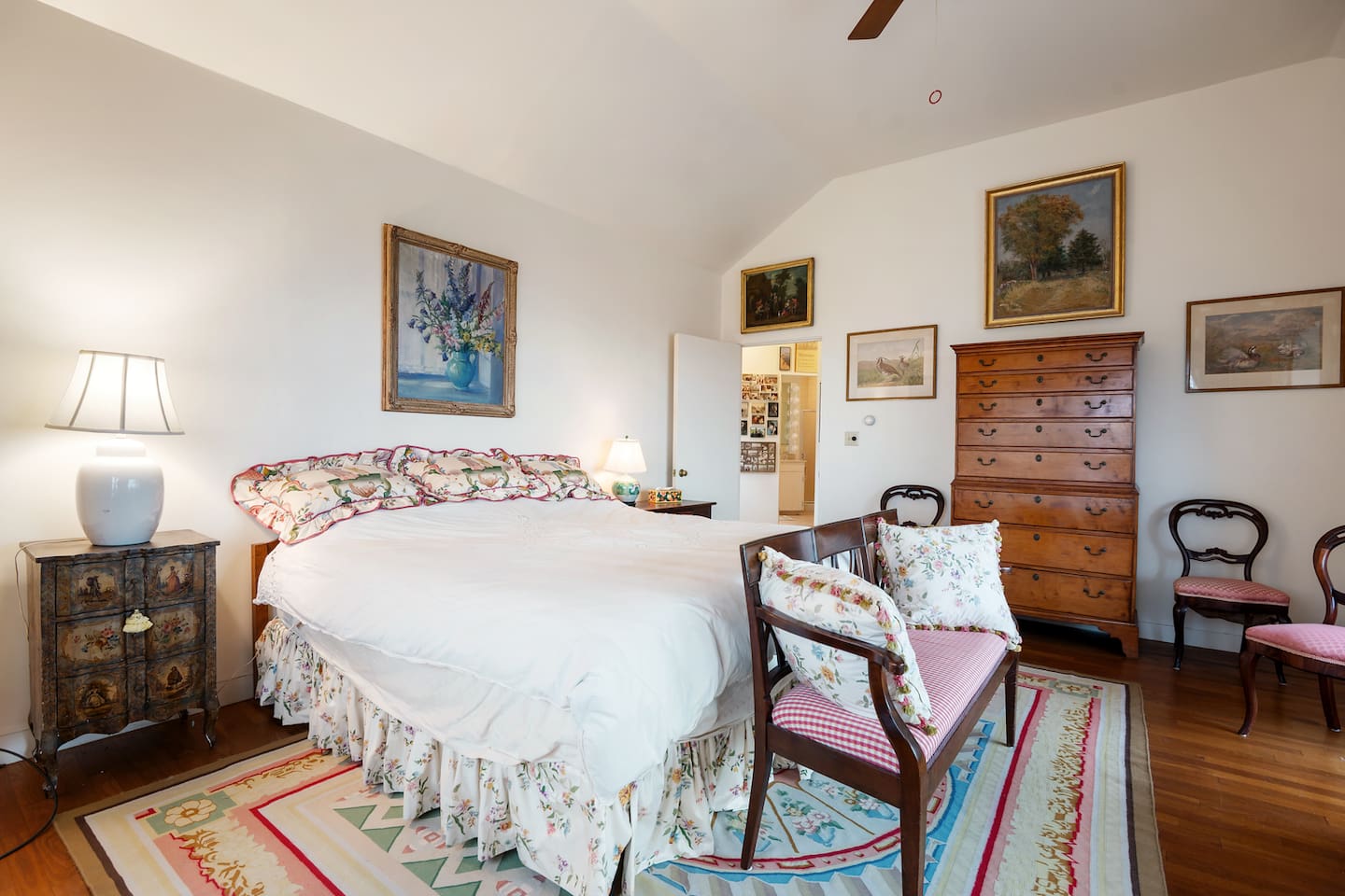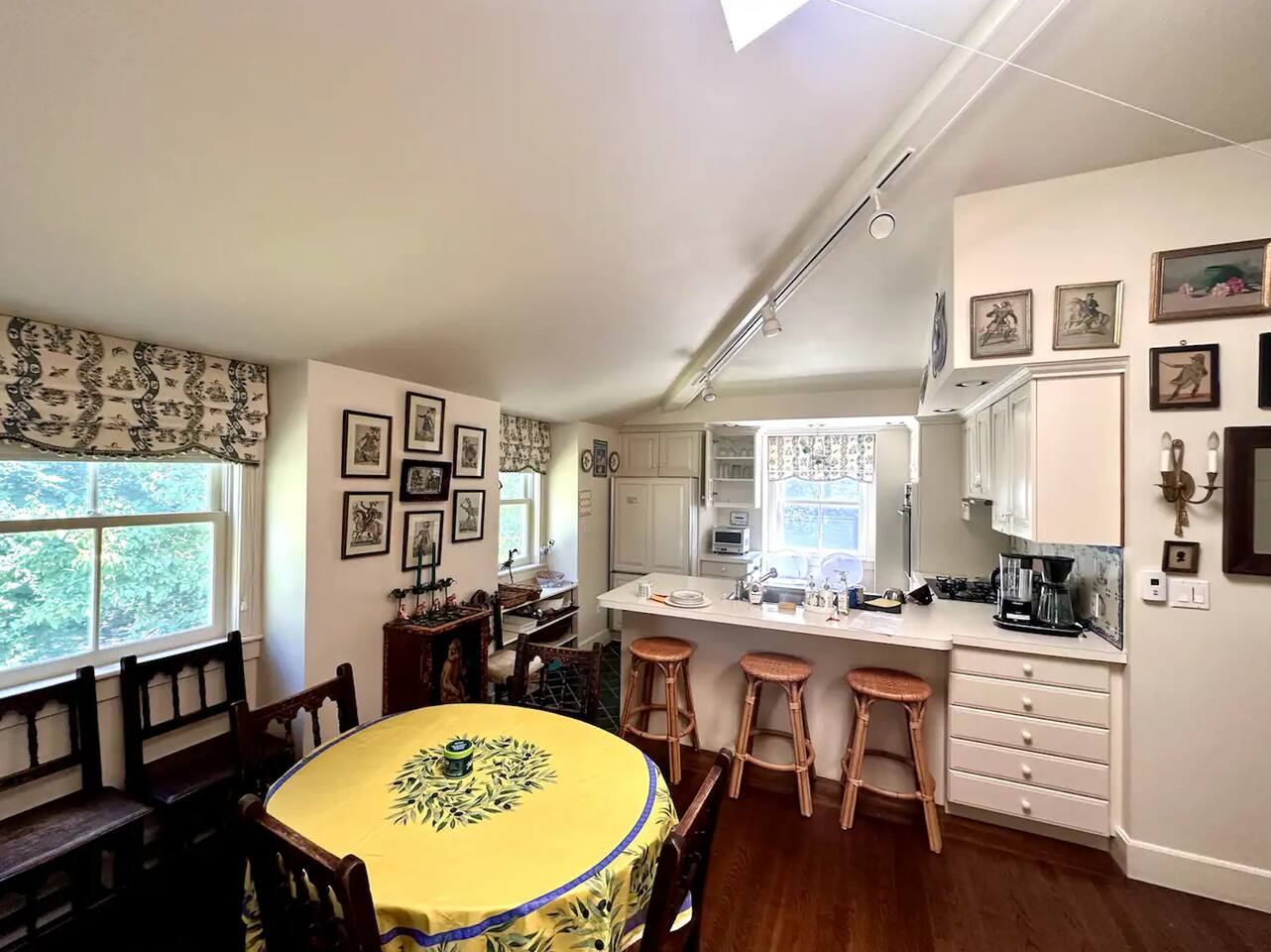 The estate has 4 separate structures and a full patio overlooking the bay. Main house - large living area, large renovated kitchen, large dining area, two bedrooms with king beds and en suite bathrooms. One half bath in the laundry room. Monkey house - upstairs living area, kitchen, bedroom with king bed and bunk room with 2 steps of bunks. Summer house - large living area overlooking the bay and patio in front, master bed with king and side room with full that share a bathroom. Two rooms both with 2 twins upstairs and a bathroom. Guest house - two twins with a full bath.