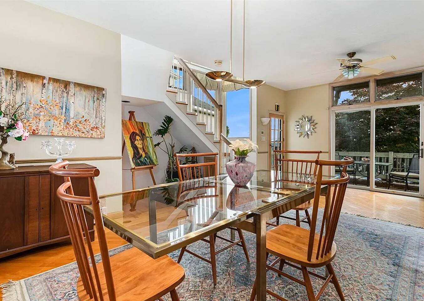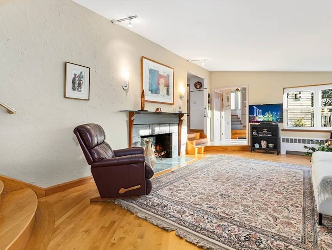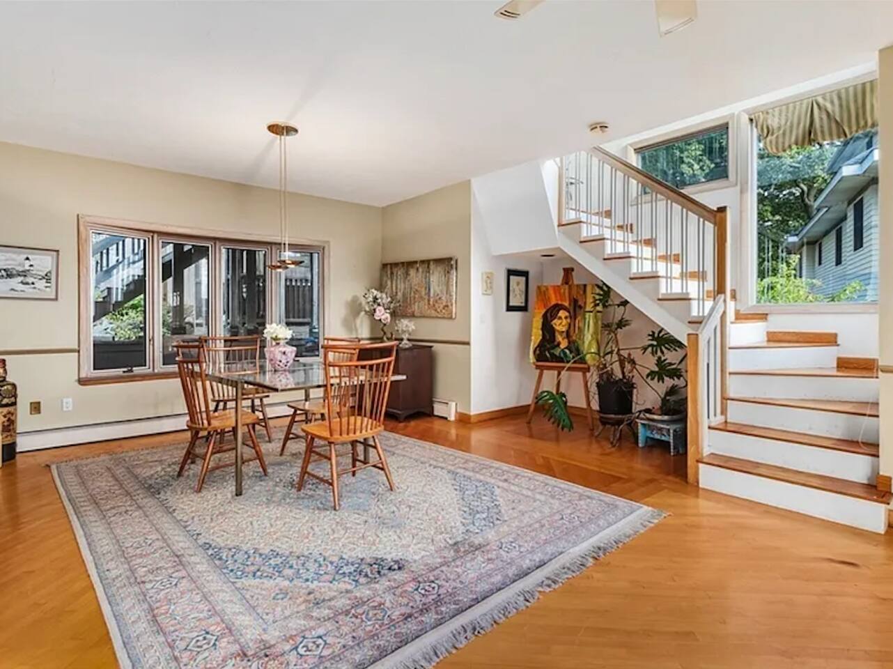 Relax in this sunny, eclectic home in a quiet central neighborhood, just minutes from beaches, restaurants and the commuter rail to Boston. Enjoy glimpses of the ocean and plenty of space for everyone to unwind, get screen time, make a meal in the well-equipped kitchen or watch a movie with a cozy fire going in the fireplace. A large dedicated workspace makes it easy for those who need to work remotely. Whatever your reason for visiting Swampscott, this versatile home will meet every need.