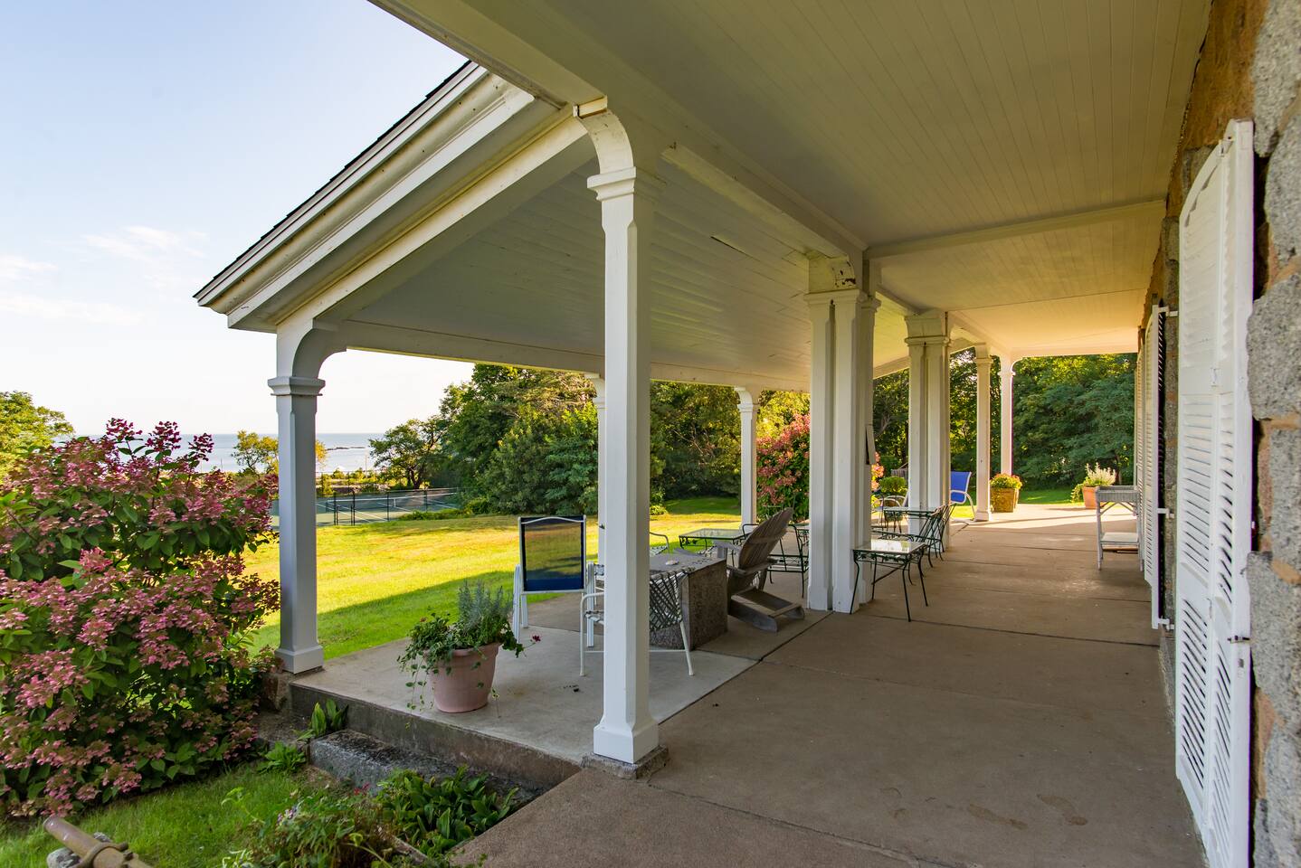Immerse yourself in the beauty of the seaside at this expansive coastal home, offering breathtaking views of the ocean from the grand living room and most upstairs bedrooms. Perfect for families or groups, the house comfortably sleeps up to 12 guests across six beautifully appointed bedrooms: Bedrooms 1 & 2: Luxurious king beds for ultimate comfort. Bedroom 3: A cozy queen bed. Bedrooms 4, 5 & 6: Each features two twin beds, ideal for flexibility and convenience. The heart of the home is the huge living room, designed for both relaxation and entertainment. Gather around the cozy fireplace, sink into plentiful seating, or enjoy movie nights on the large-screen TV. Step outside onto the spacious patio, where you can unwind in comfortable seating while soaking in panoramic views of rolling hills that lead to pristine beaches and the ocean beyond. For dining, the elegant dining room offers a touch of old-world charm, perfect for hosting memorable meals. The well-equipped galley kitchen provides everything you need to prepare anything from simple snacks to gourmet feasts. Your stay includes access to two private beaches and tennis courts overlooking Ipswich Bay, ensuring endless opportunities for recreation and relaxation. For adventure lovers, the property also provides two adult and two child kayaks, inviting you to explore the waters nearby. This is more than a vacation home—it’s your gateway to unforgettable coastal living.