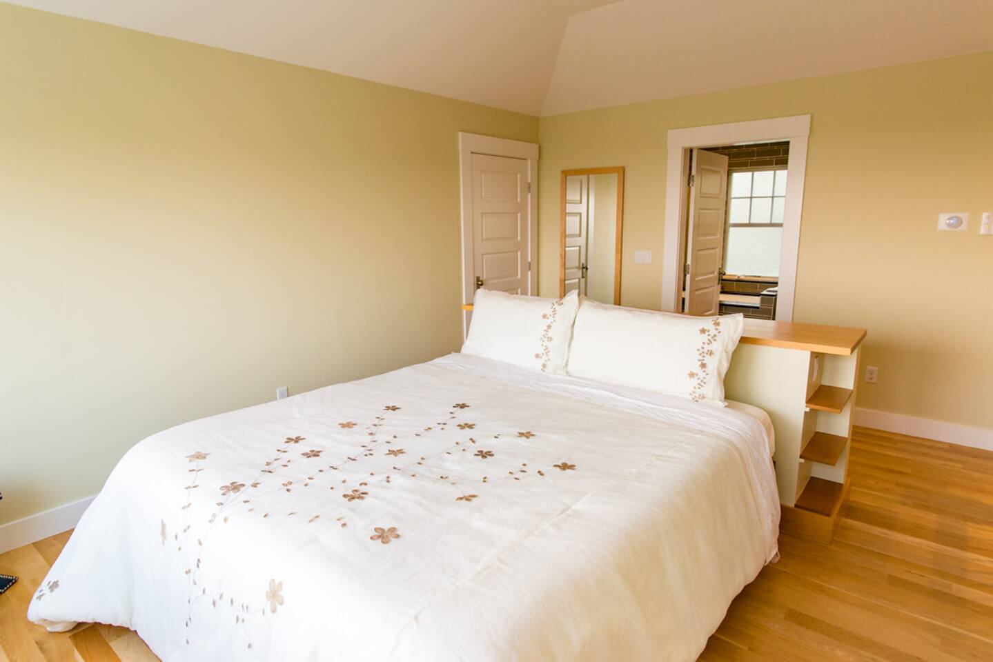 - Step-free access There are no steps to get into the bedroom, and the entryway is level