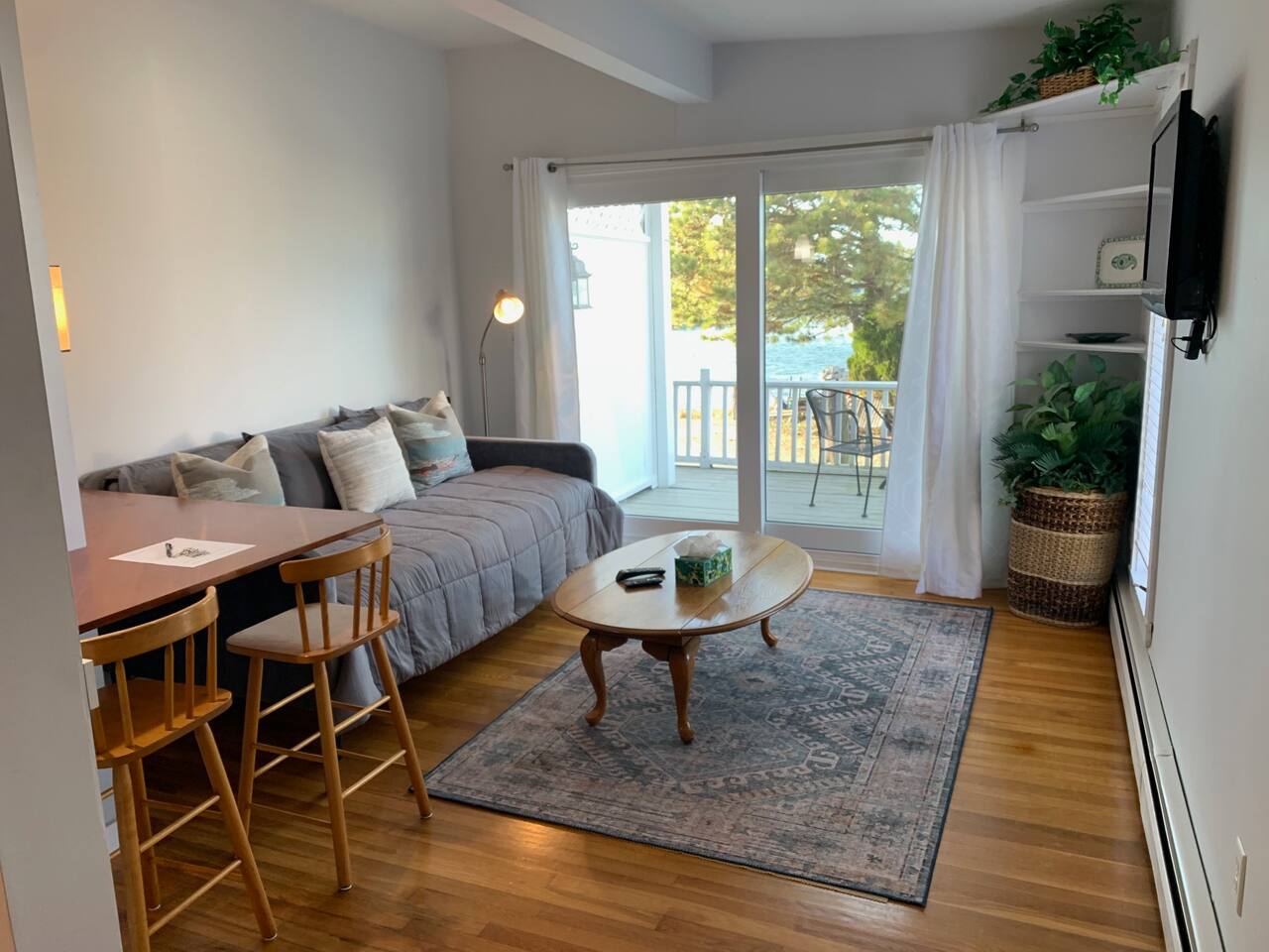 Experience waterfront living at its finest with this charming condo, perfectly situated directly in front of Smith Marina, offering stunning 24/7 water views. Step into an inviting open-concept living and kitchen area, featuring a custom, hand-crafted high-top table that doubles as a dining or workspace—all while enjoying views of the marina. Relax on the private balcony, complete with a table and cozy seating for two, perfect for sipping your morning coffee or unwinding at sunset.