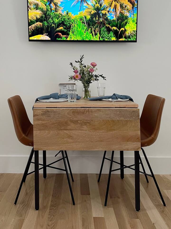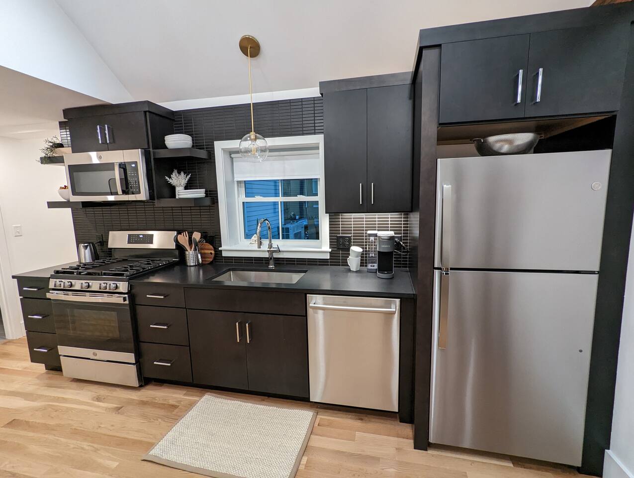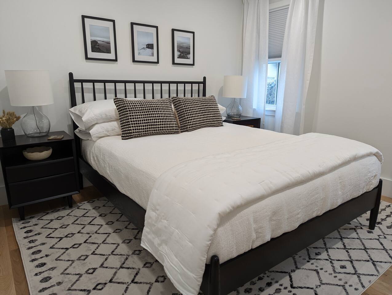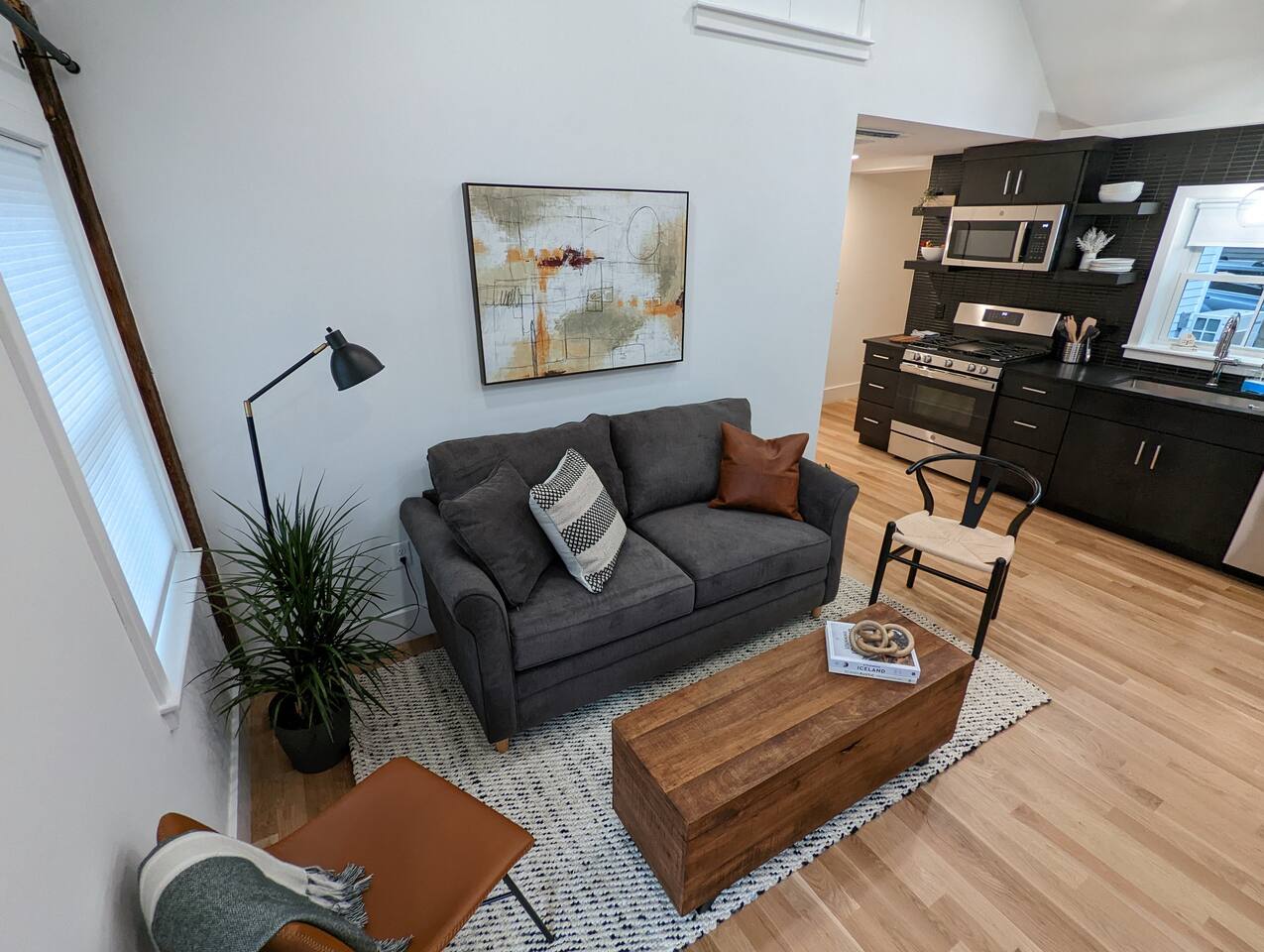 This is a completely private apartment next to another apartment, with a private entrance. It's packed with modern amenities including digitally controlled central heat and air conditioning, an ultra modern kitchen, a fully stocked Keurig coffee station, stainless microwave, stove and fridge, a luxurious Kohler bath, plush towels & linens, and a calming design aesthetic. The interior was decorated in a Nordic style that evokes "Hygge". The word hygge means: "giving comfort to someone" or "to console". The word has roots in ancient Norse, and the term reflects our English word “Hug”. So hygge is simply the feeling of being embraced by the wonderful things of the world. The Bell House Retreat offers that in spades. There's a gracious primary bedroom with a sumptuous queen bed, linen curtains and furnishings by Article Furniture, a secondary bedroom with twin beds. The kitchenette seating area offers vegan leather chairs and an expanding wood table from West Elm. Outside is a private patio seating for morning coffee. It's a perfect location for a family or couple visiting the area for graduations and sightseeing, or for those that simply need a relaxing Hygge retreat from the world.